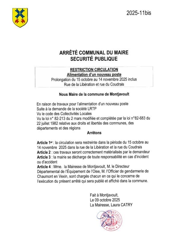 le chantier d’alimentation d’un nouveau poste électrique dans le hameau de BEAUGRENIER est prolongé à partir de mercredi 15 octobre jusqu’au 14 novembre inclus.