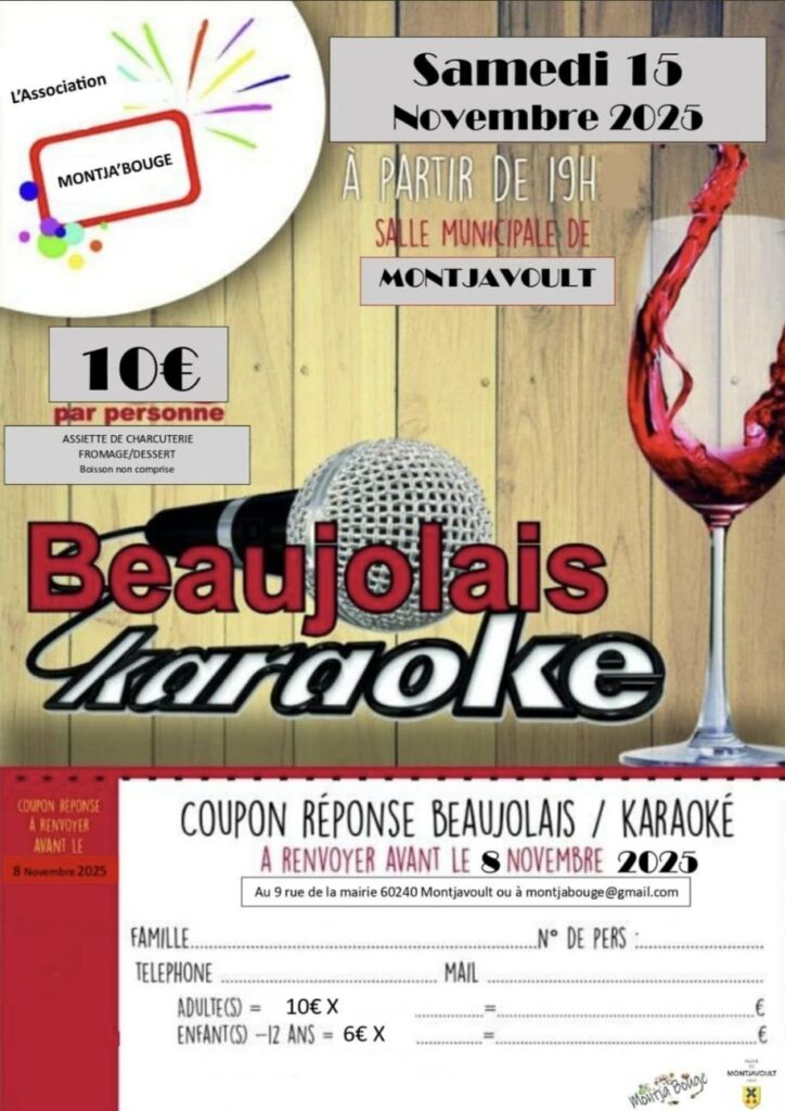 Le samedi 15 novembre « Beaujolais KARAOKÉ » organisé par Montja Bouge, et,