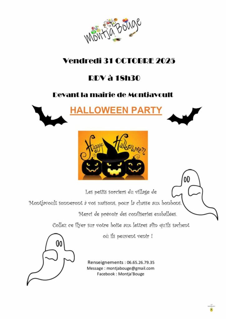 L’association Montja’Bouge vous invite à vous regrouper à 18h30 devant la mairie pour partir faire du porte à porte pour récolter des bonbons dans le village,