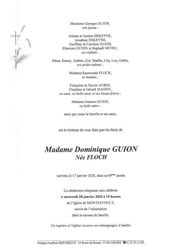 L’enterrement sera suivi d’un verre de l’amitié dans la salle DADO-HESSIE.